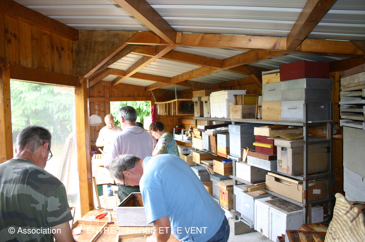 La mercredi 7 aout 2019 au Rucher Ecole journée de grattage des cadres des ruches, fonte de la cire, remise en ordre de la Maison de l'Abeille. Et aprés l'effort le réconfort autour d'un conviviale repas.