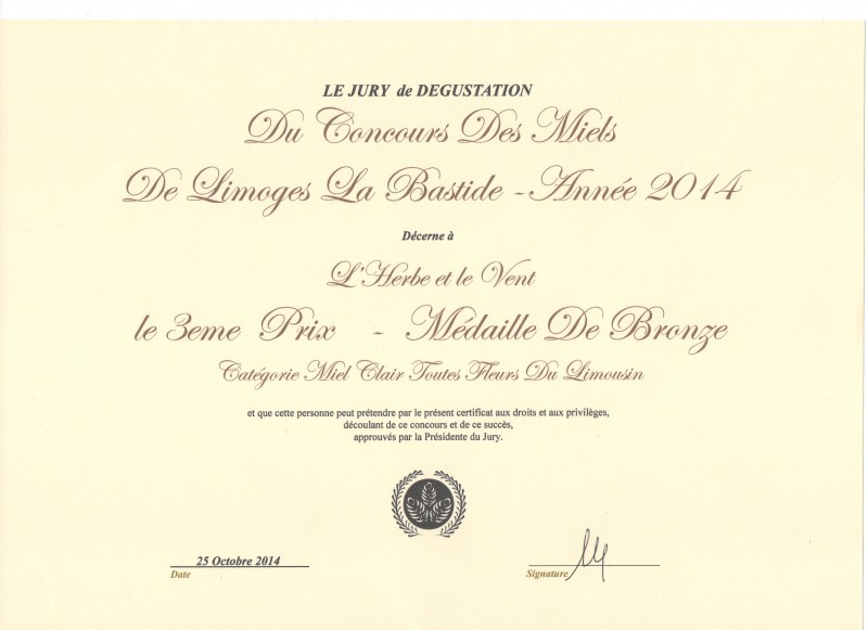 RESULTAT DU CONCOURS DES MIELS 2014