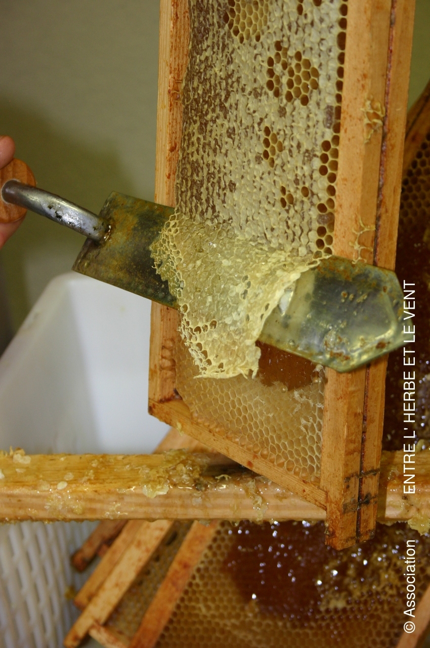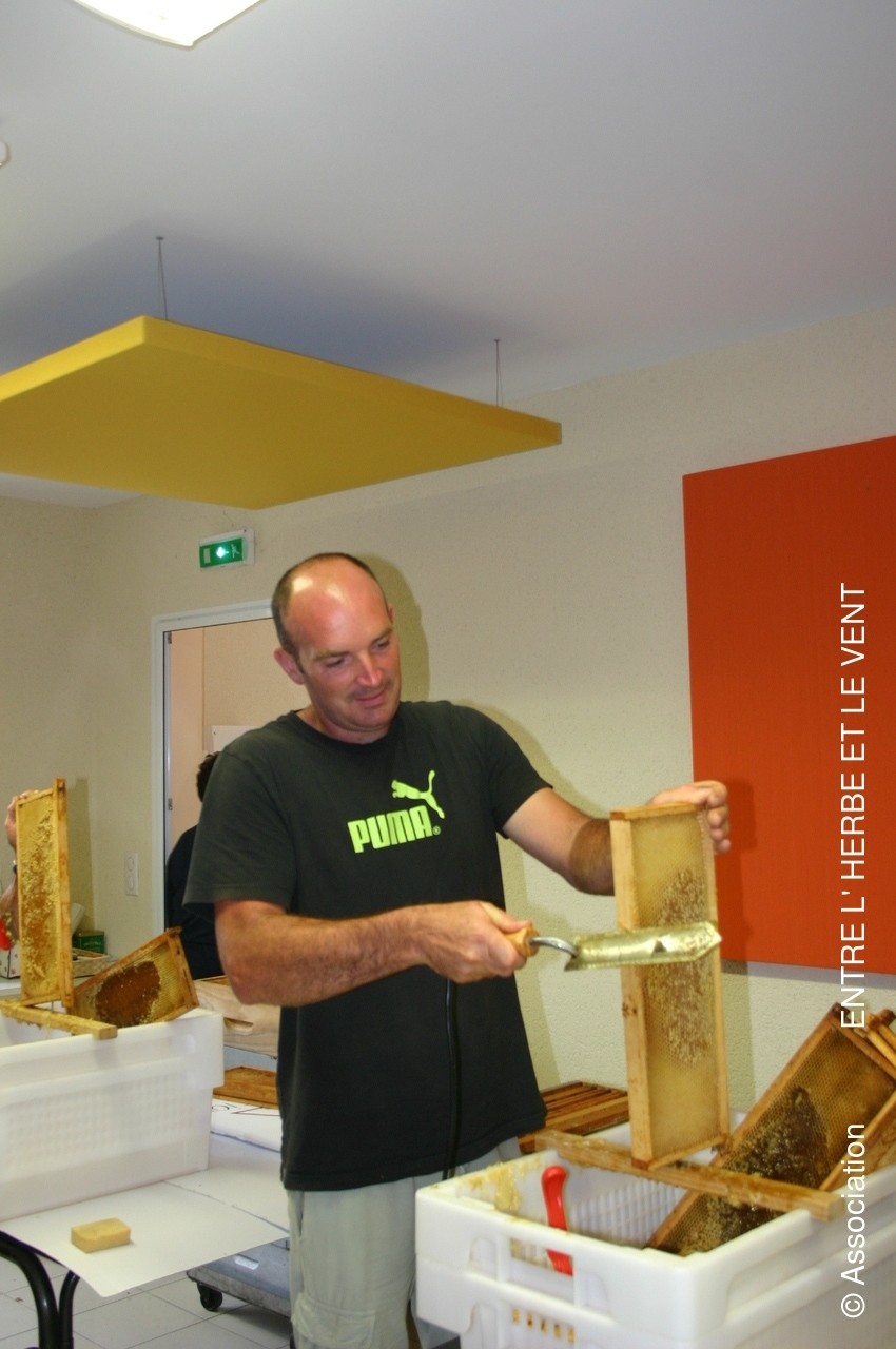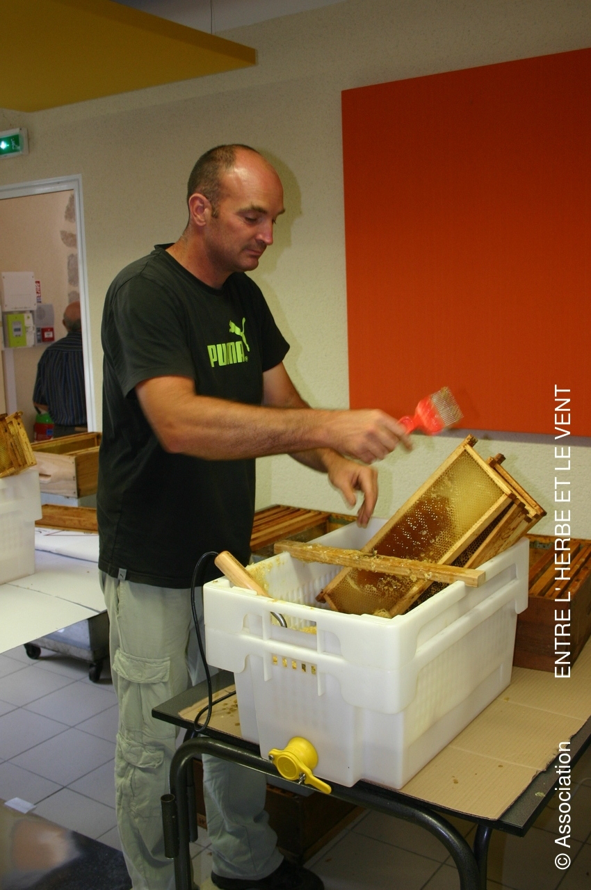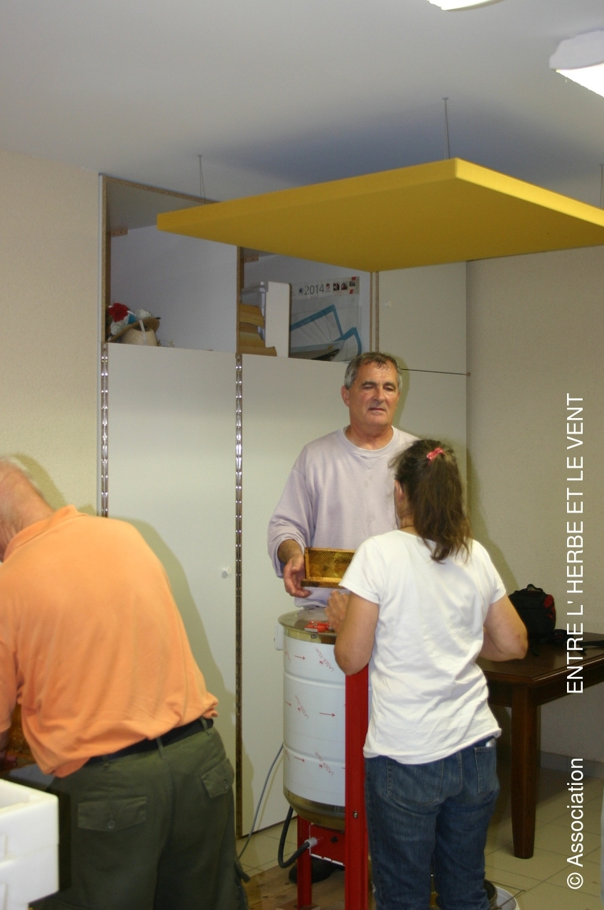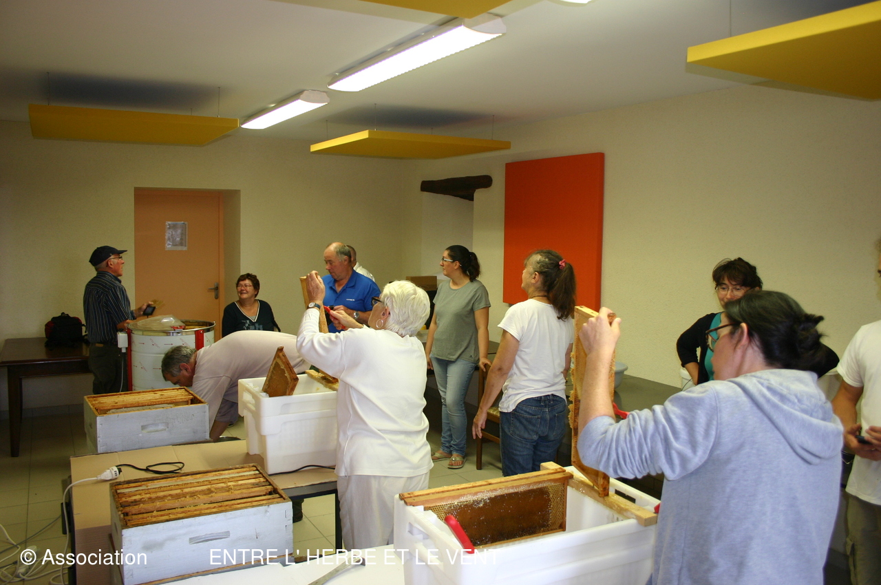 Récolte du miel de l'Association le samedi 27 juillet 2019 en presence des débutants en apiculture